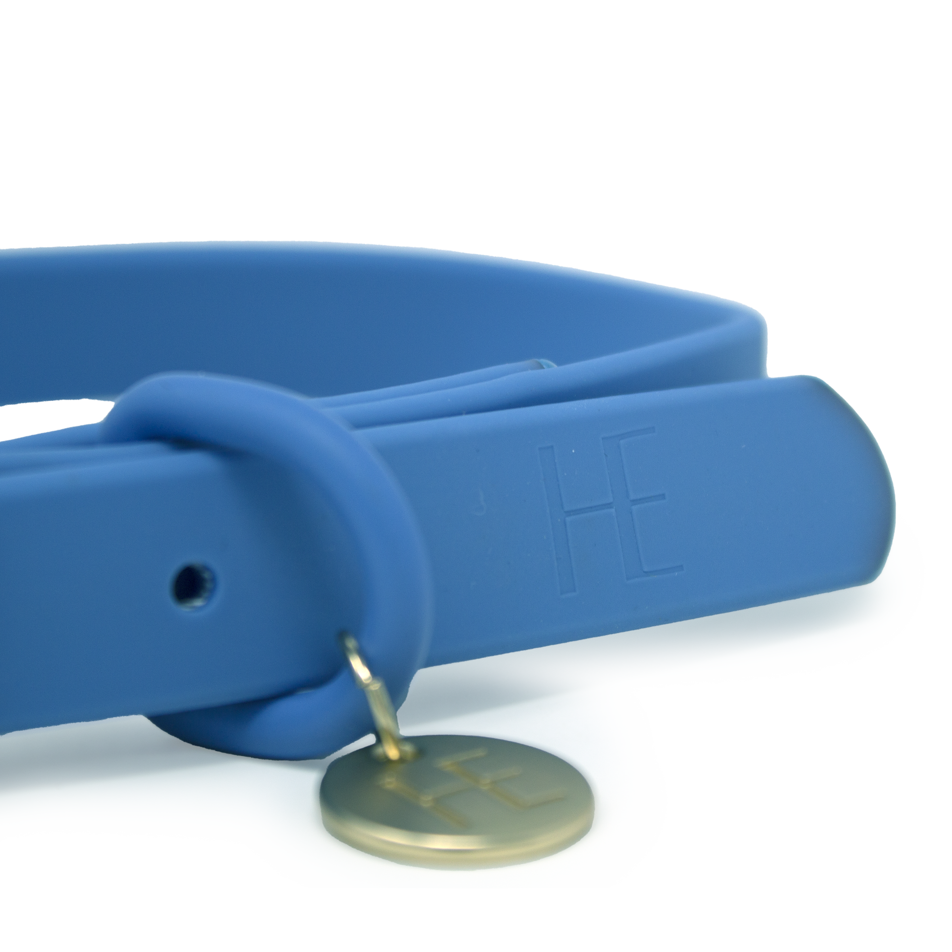 A practical fully waterproof dog collar in a soft, matte finish with complimenting Champagne gold hardware.