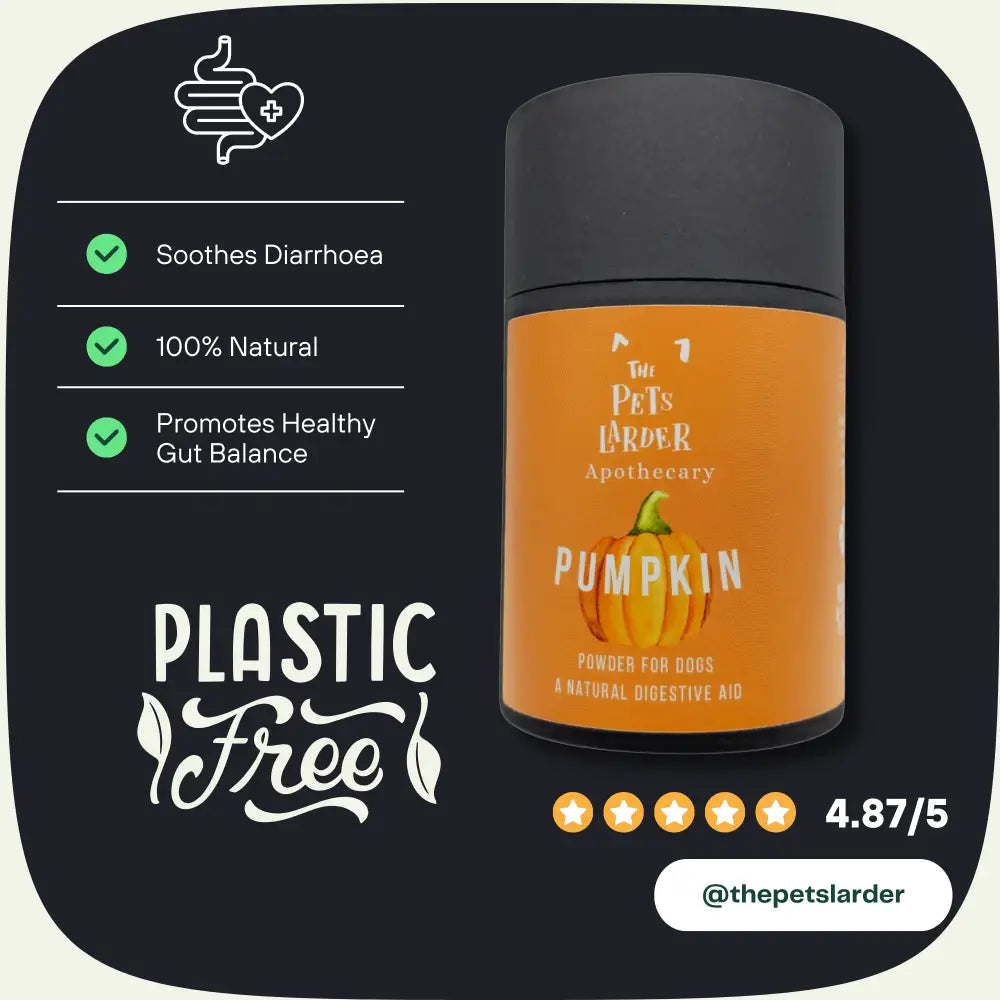 Pumpkin Powder for Dogs – a natural, fibre-rich supplement that supports your dog’s digestive health and overall well-being. Made from 100% pure dried pumpkin, this versatile powder is an easy and nutritious addition to your dog’s diet. Dog owners are increasingly choosing pumpkin powder to support their pets' health. Packed with vitamins, minerals, and antioxidants, pumpkin powder is ideal for promoting regular digestion, managing weight, and boosting immune health in dogs of all ages. Its palatable taste means most dogs love pumpkin powder, making it a welcome treat in their daily routine.